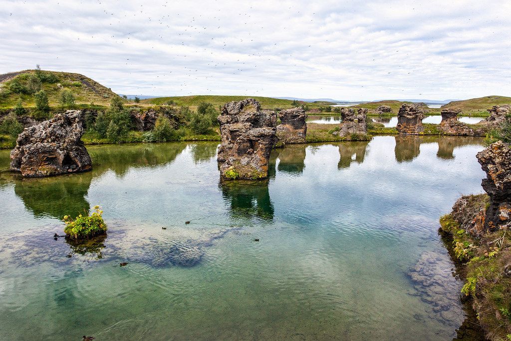 Náttúrufegurð við Mývatn er einstök en eldsumbrot hafa mótað landslagið þar frá örófi alda.